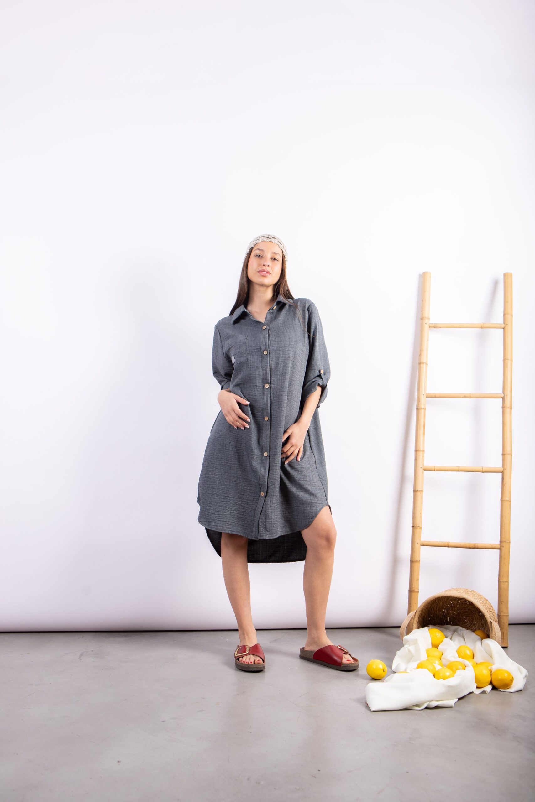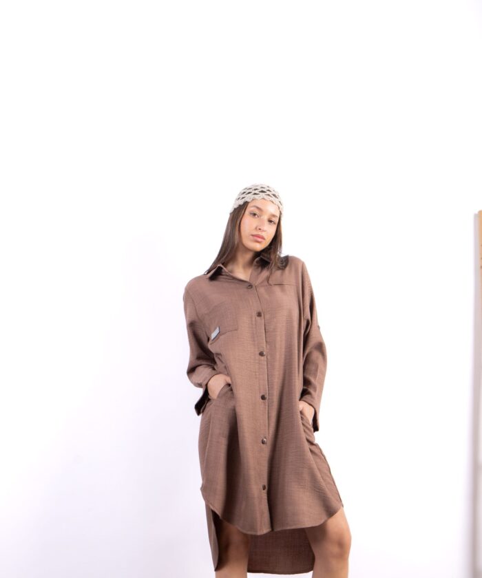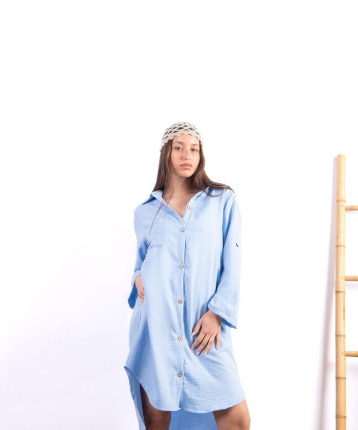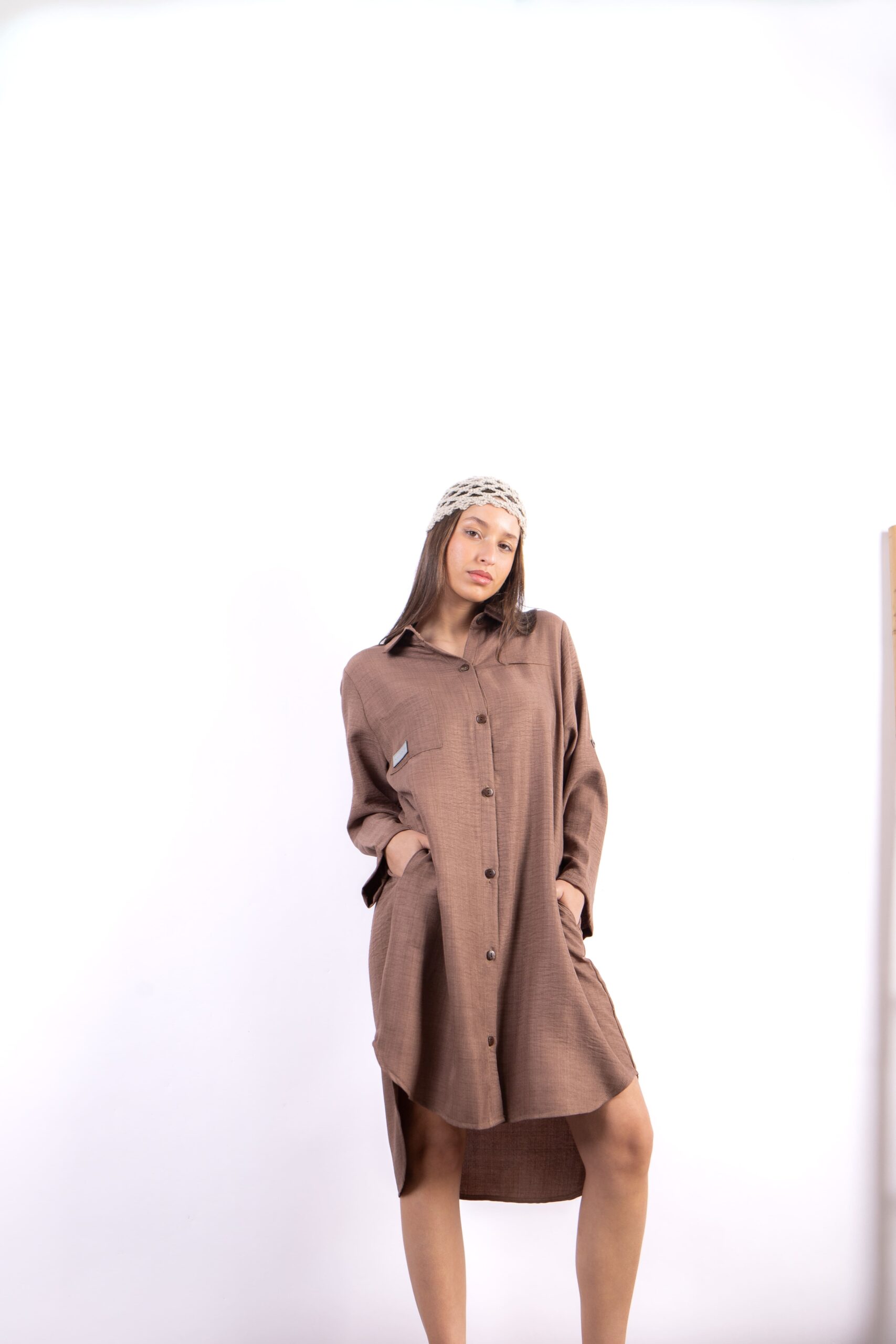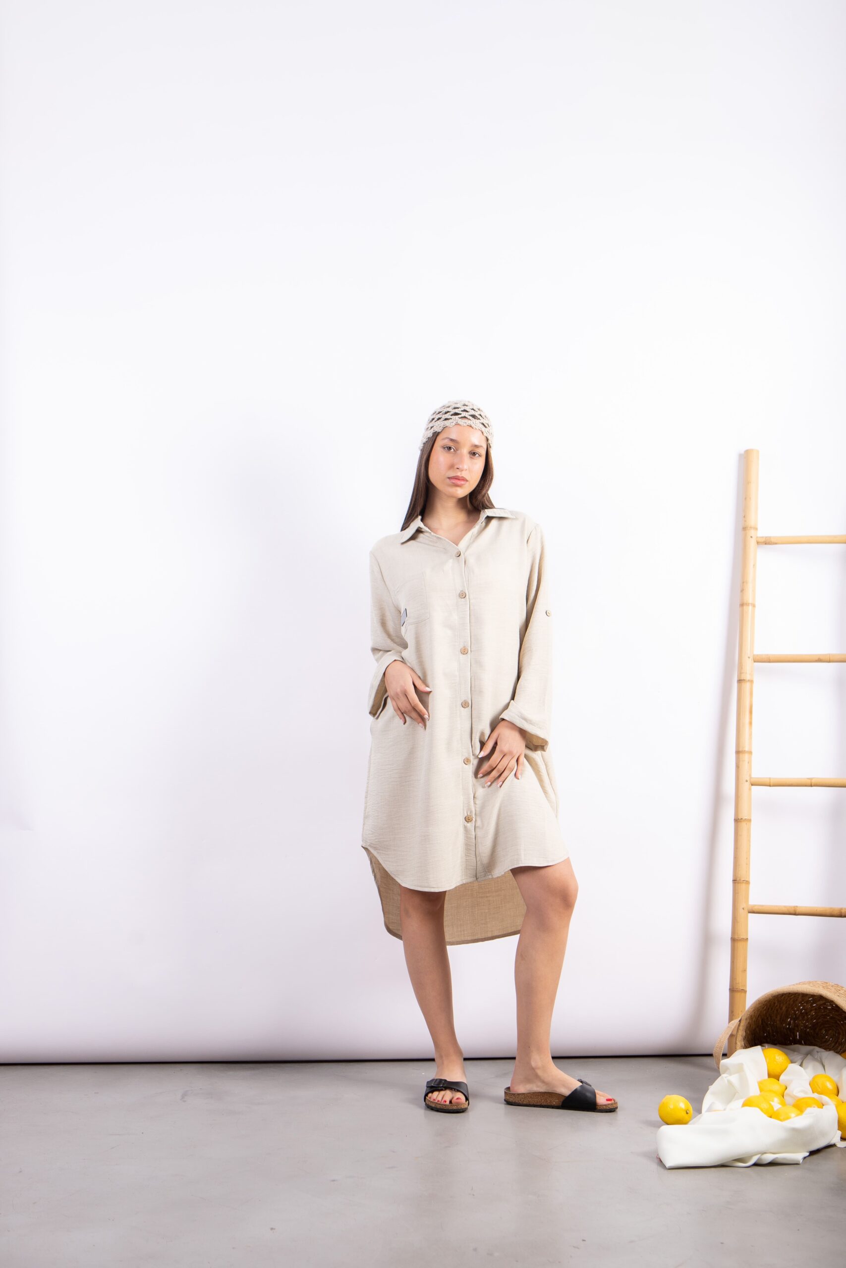 Confeccionadas en lino mezcla liviano, ideales para usar todo el año. Su diseño amplio y relajado permite llevarla como vestido o camisa abierta, según el look que elijas. Presenta mangas rebatibles con presilla, bolsillos laterales funcionales y terminación más larga en la parte trasera.