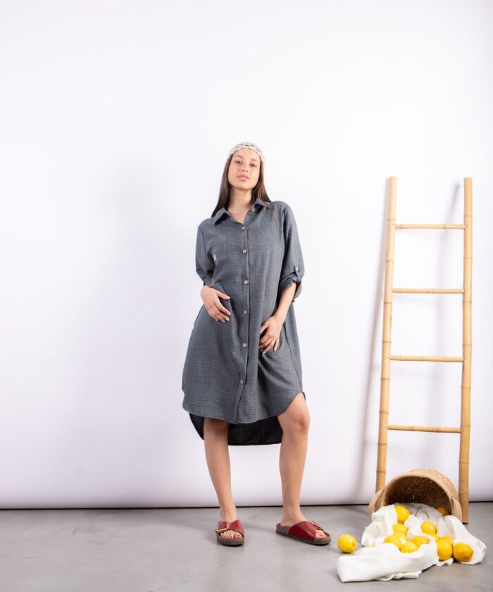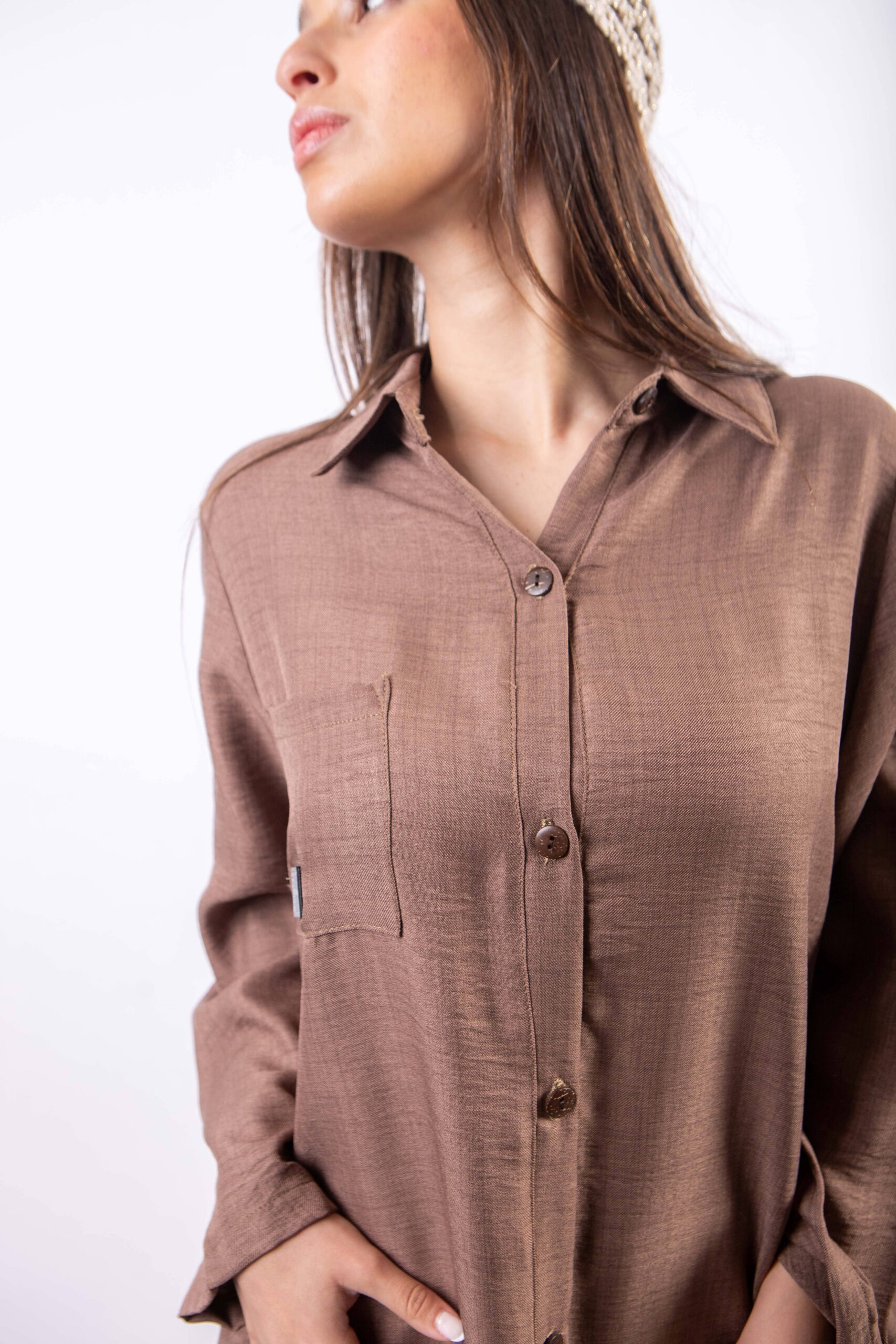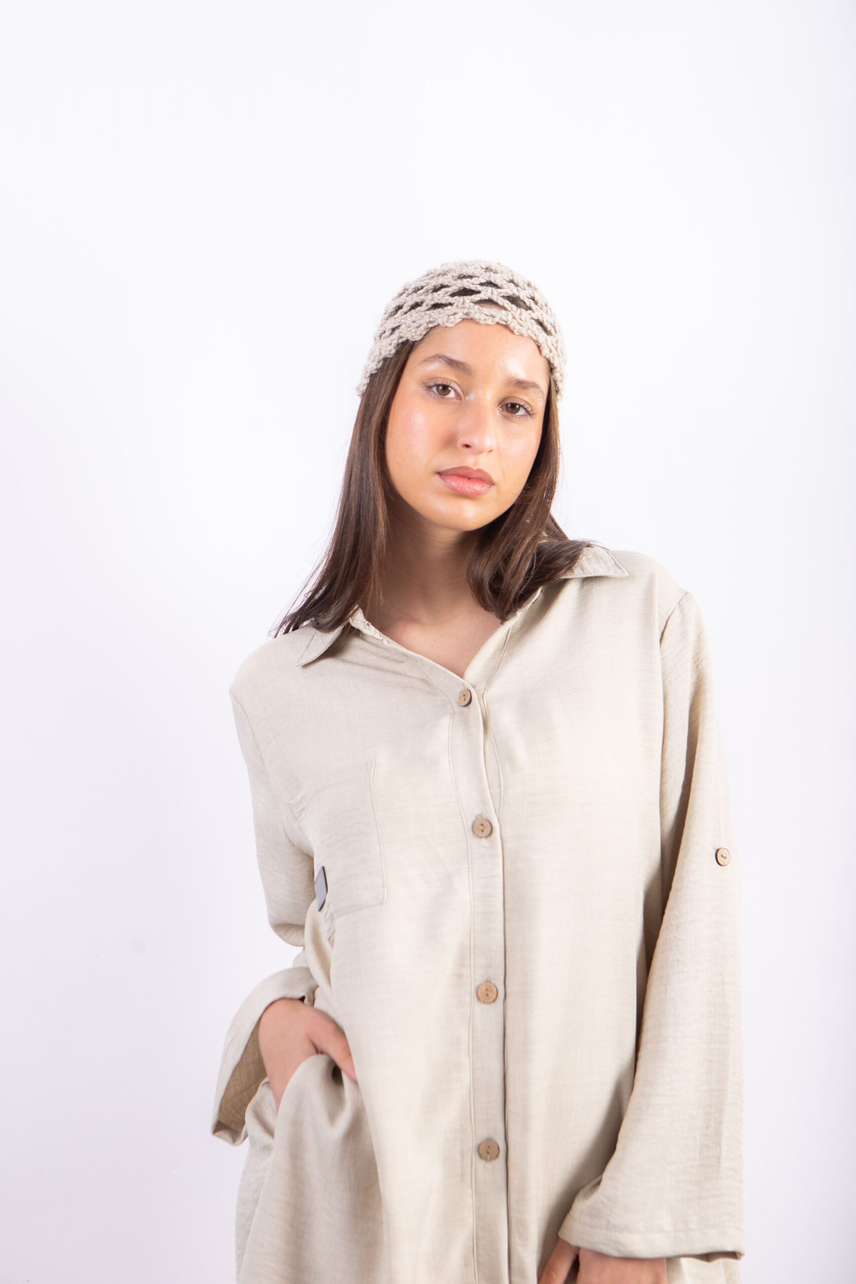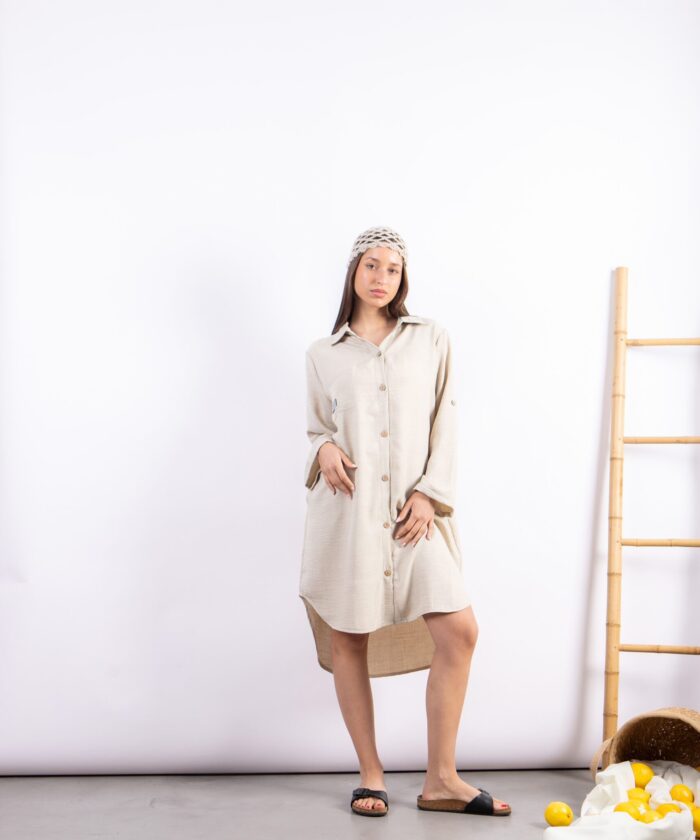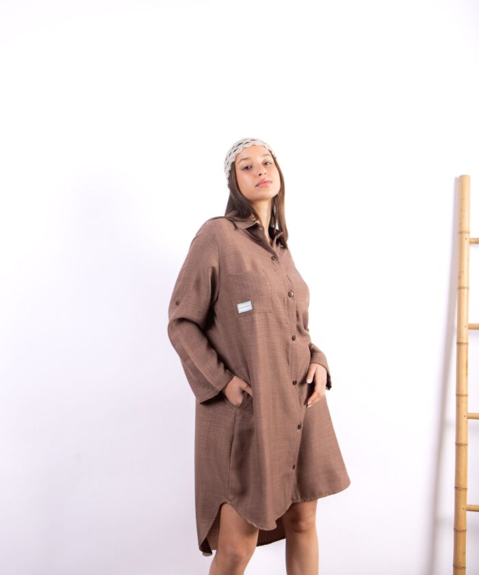 Confeccionadas en lino mezcla liviano, ideales para usar todo el año. Su diseño amplio y relajado permite llevarla como vestido o camisa abierta, según el look que elijas. Presenta mangas rebatibles con presilla, bolsillos laterales funcionales y terminación más larga en la parte trasera.