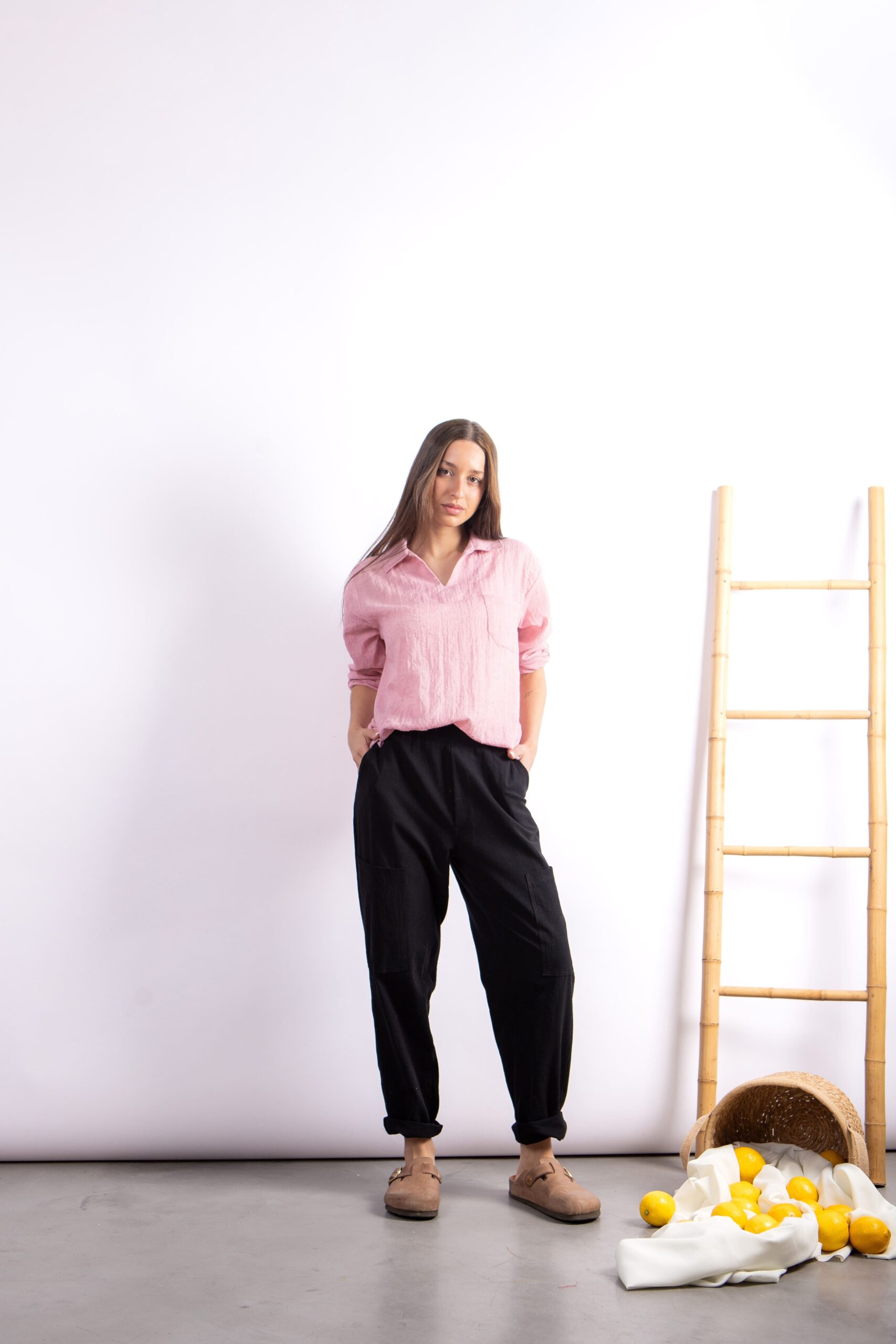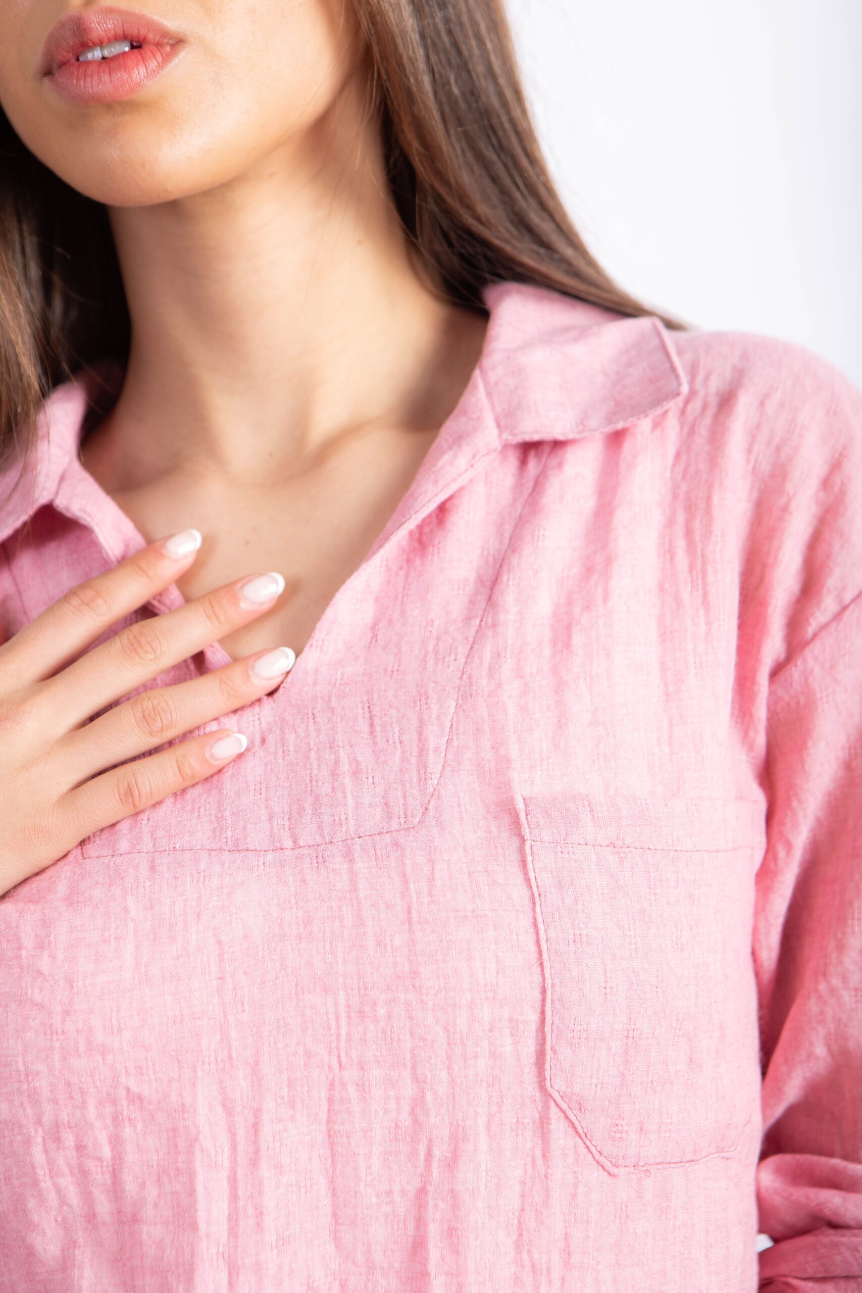 Camisola de gasa con textura liviana, suave al tacto y con caída natural.
