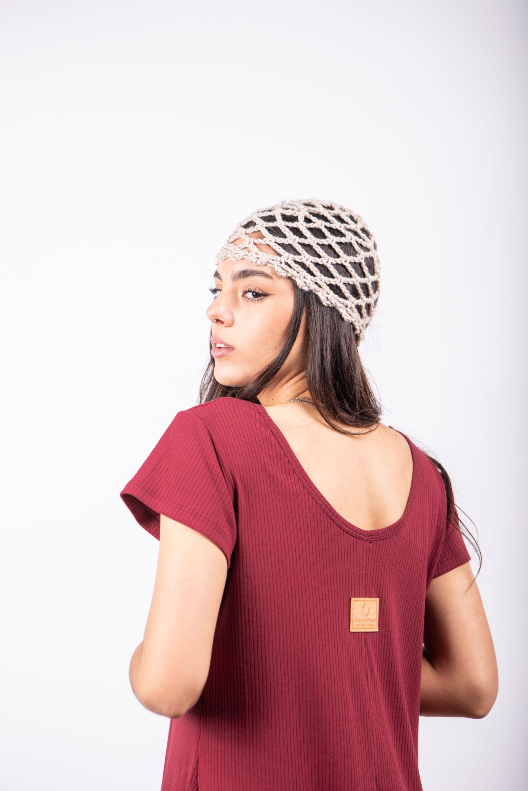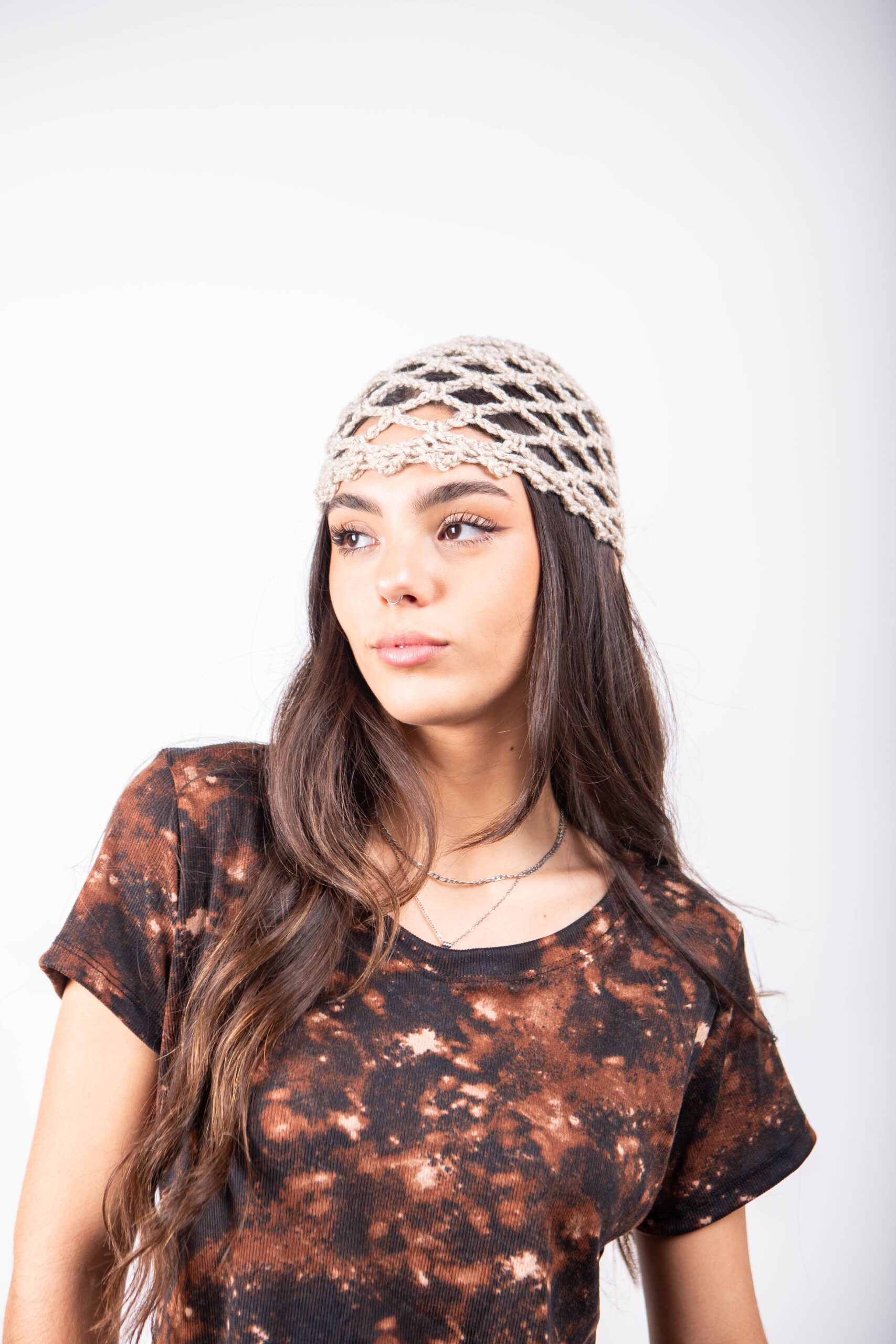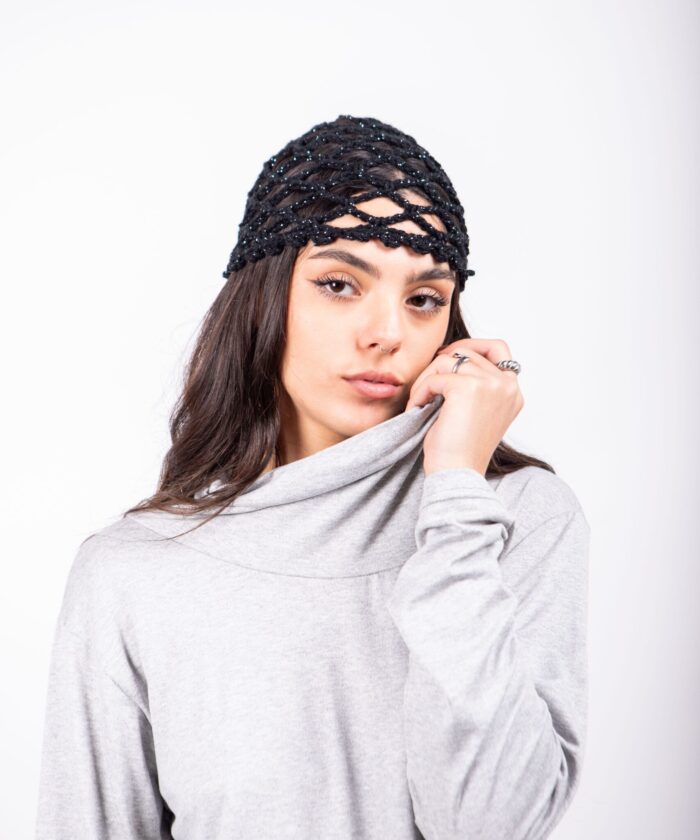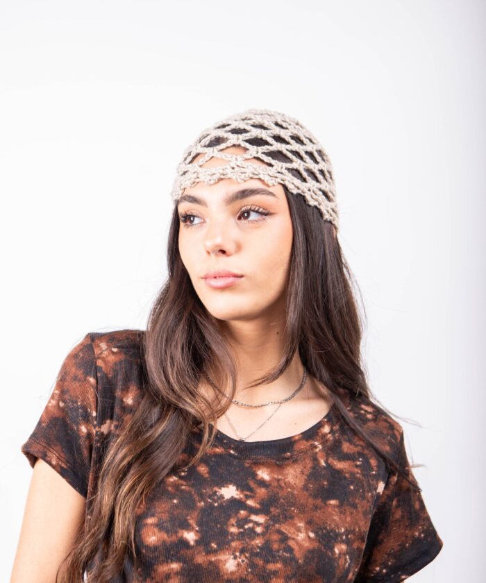 Casquete Tejido Artesanal Acrílico con Lurex.